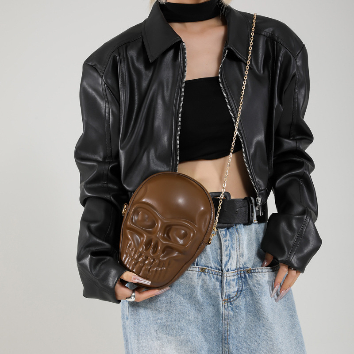 Product information:Color: black, white, brown, Silver Hardness: medium Material: PU Popular elements: skull Style: Trendy