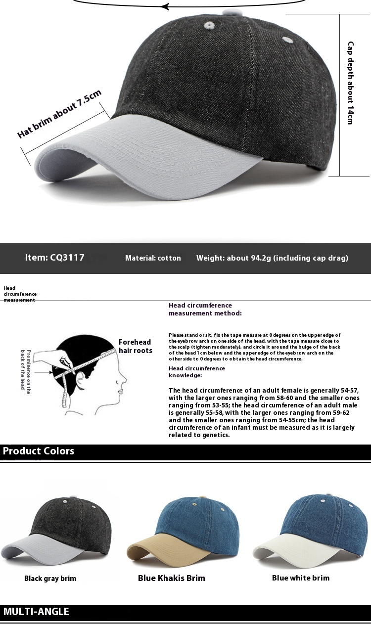 Color: Black gray brim, blue khaki brim, Blue White brim