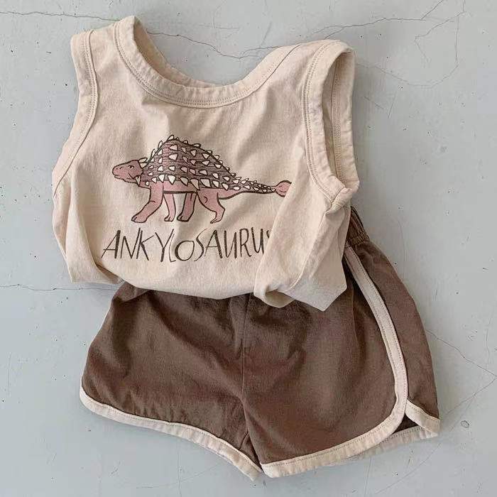 Apricot Dinosaur ANKYLOSAURUS Vest + Coffee Shorts,
