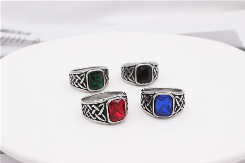 Personality Viking Pattern Gemstone Titanium Steel Ring