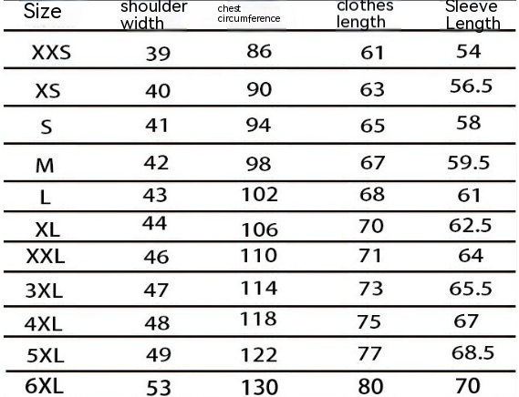 Size: XS S M L XL XXL 3XL 4XL 5XL