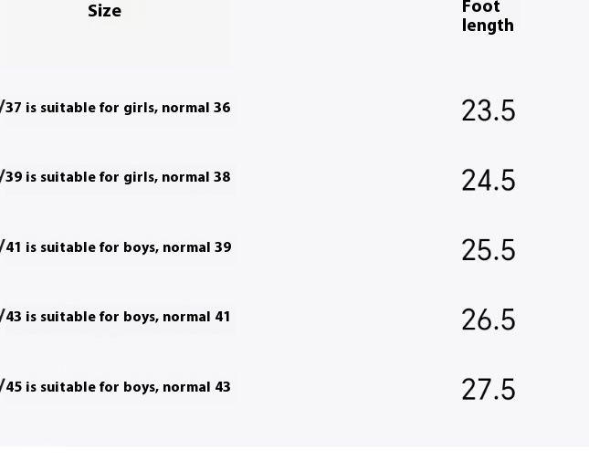 Size: 36/37 suitable for girls normal 3637,38/39 suitable for girls normal 3839,40/41 suitable for boys normal 3940,42/43 suitable for boys normal 4142,44/45 suitable for boys normal 4344