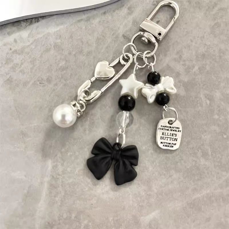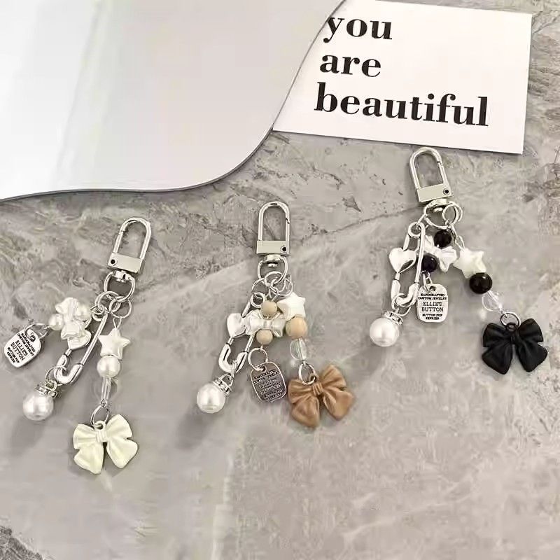 Colors: [Brown] heart-shaped brooch with bow pendant, [Black] heart-shaped brooch with bow pendant, [White] heart-shaped brooch with bow pendant