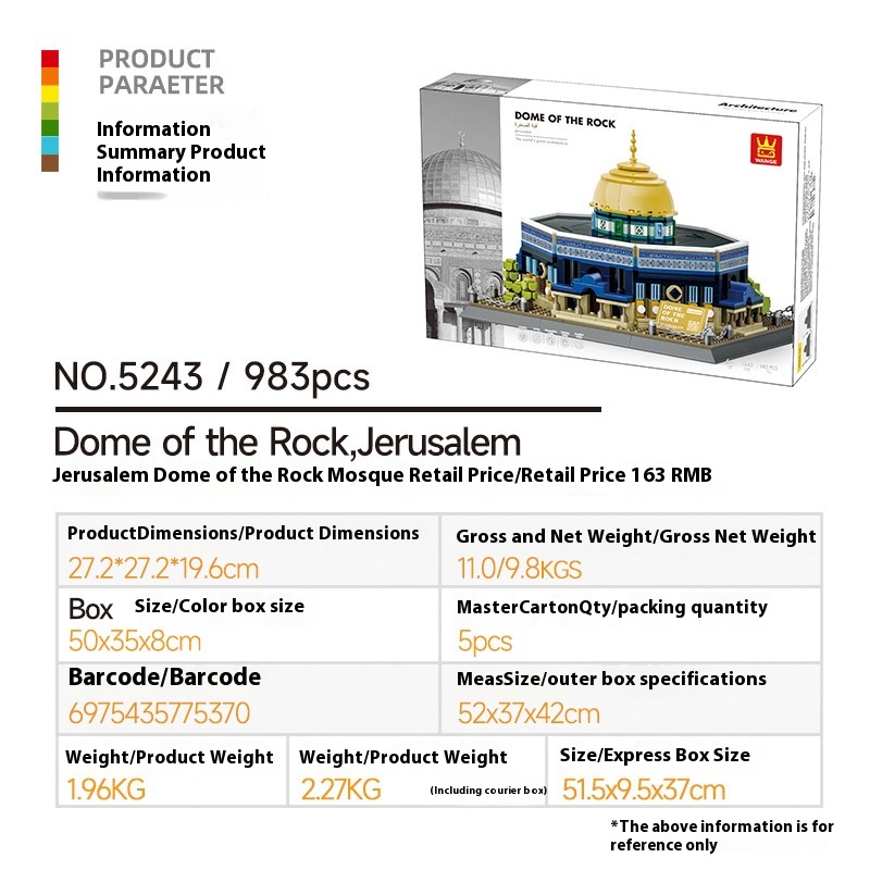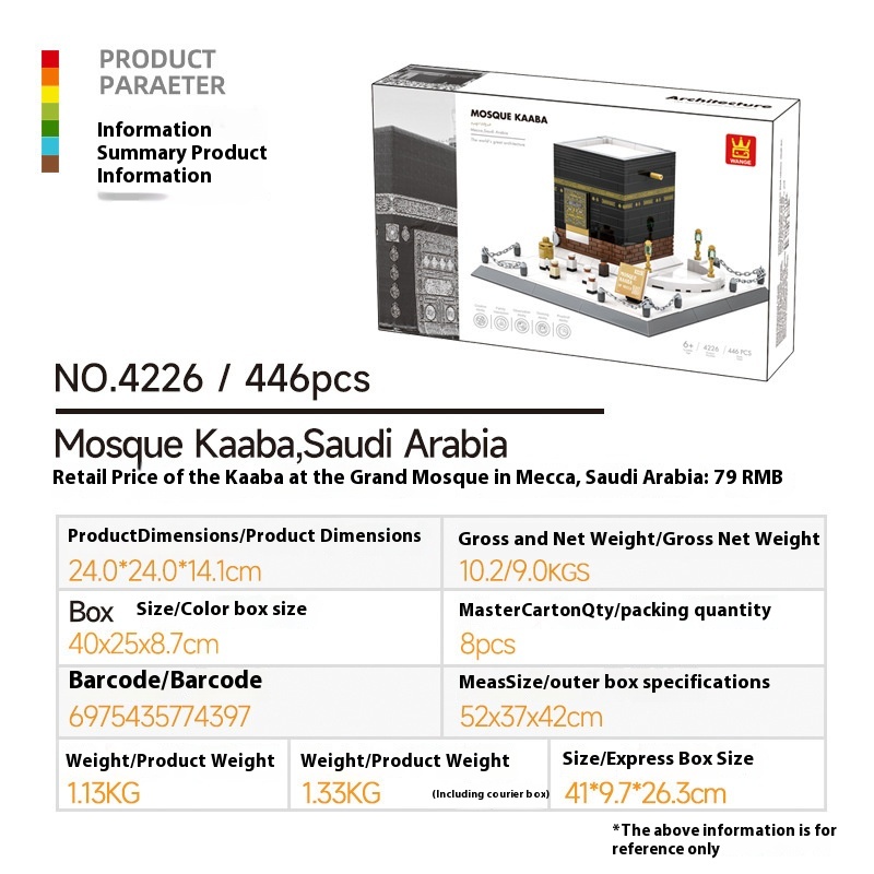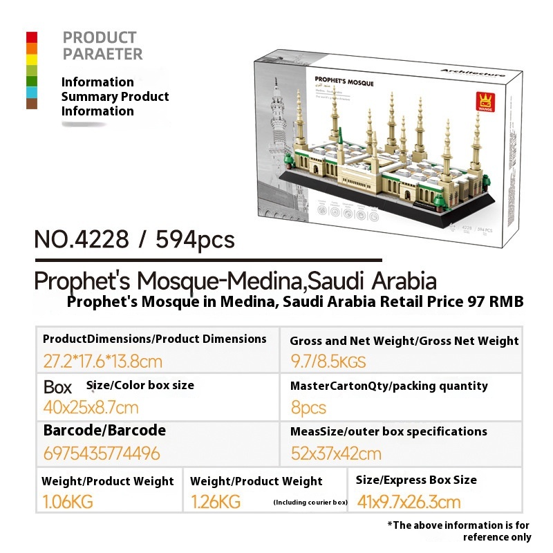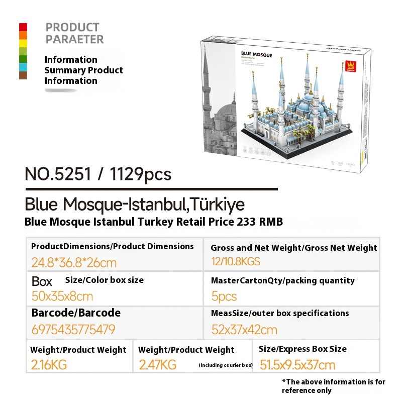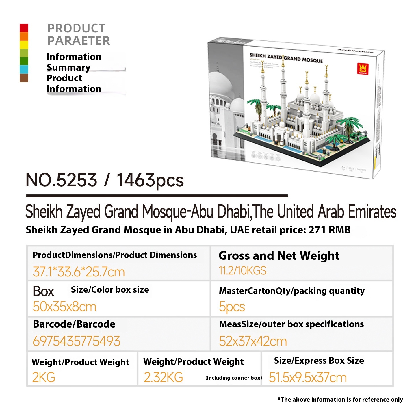 Color: 5251 Turkey Istanbul Blue Mosque [1129PCS],5253 Abu Dhabi Sheikh Zayed Grand Mosque [1463PCS],5243 Jerusalem Rock Dome Mosque, 4226 Saudi Arabia Mecca Grand Mosque kerbai,4228 Saudi Arabia Medina Al-Masjid al-Nabawi, 6220 Saudi Arabia Mecca mosque