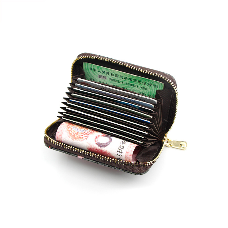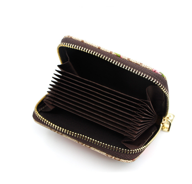 The internal structure of the small package: zipper grid, photo position, card position, secret grid, change position, ID position