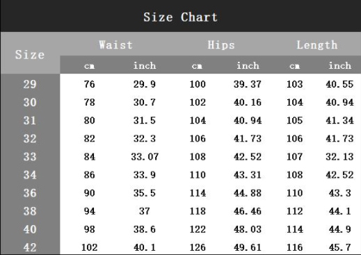 Size: 29,30,31,32,33,34,36,38,40,42