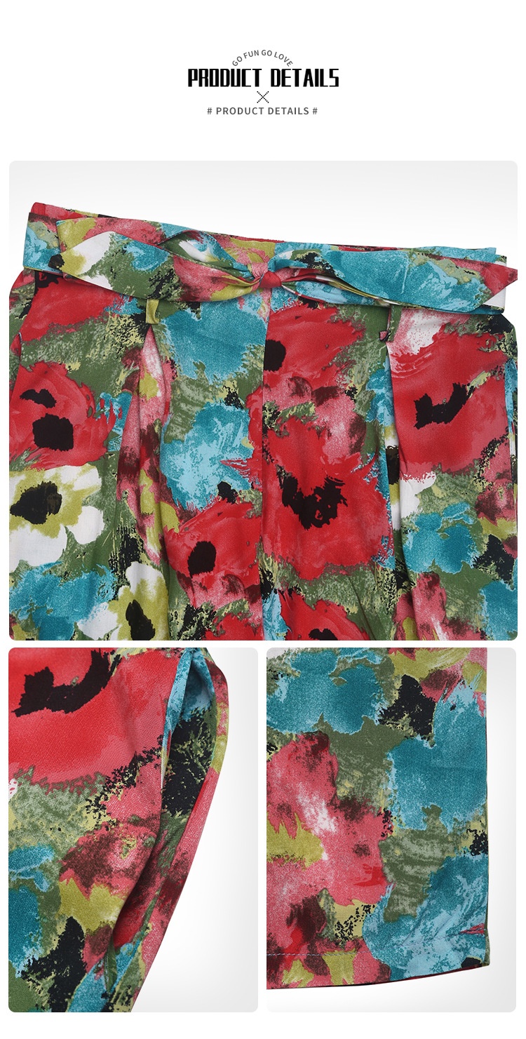 Personalized Floral Print High Waist Casual Wide Leg Pants