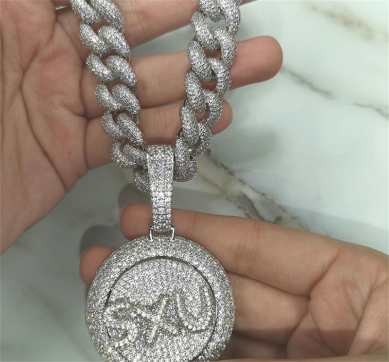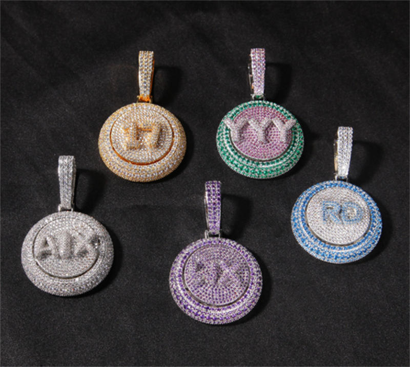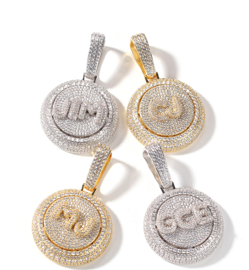 Personalized Hip Hop Custom Rotating Pendant 26 Letter Name Micro Inlaid Zircon