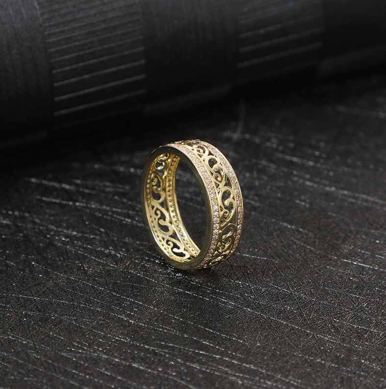 Colors: Gold-colored ring with openwork design, silver-colored ring with openwork design