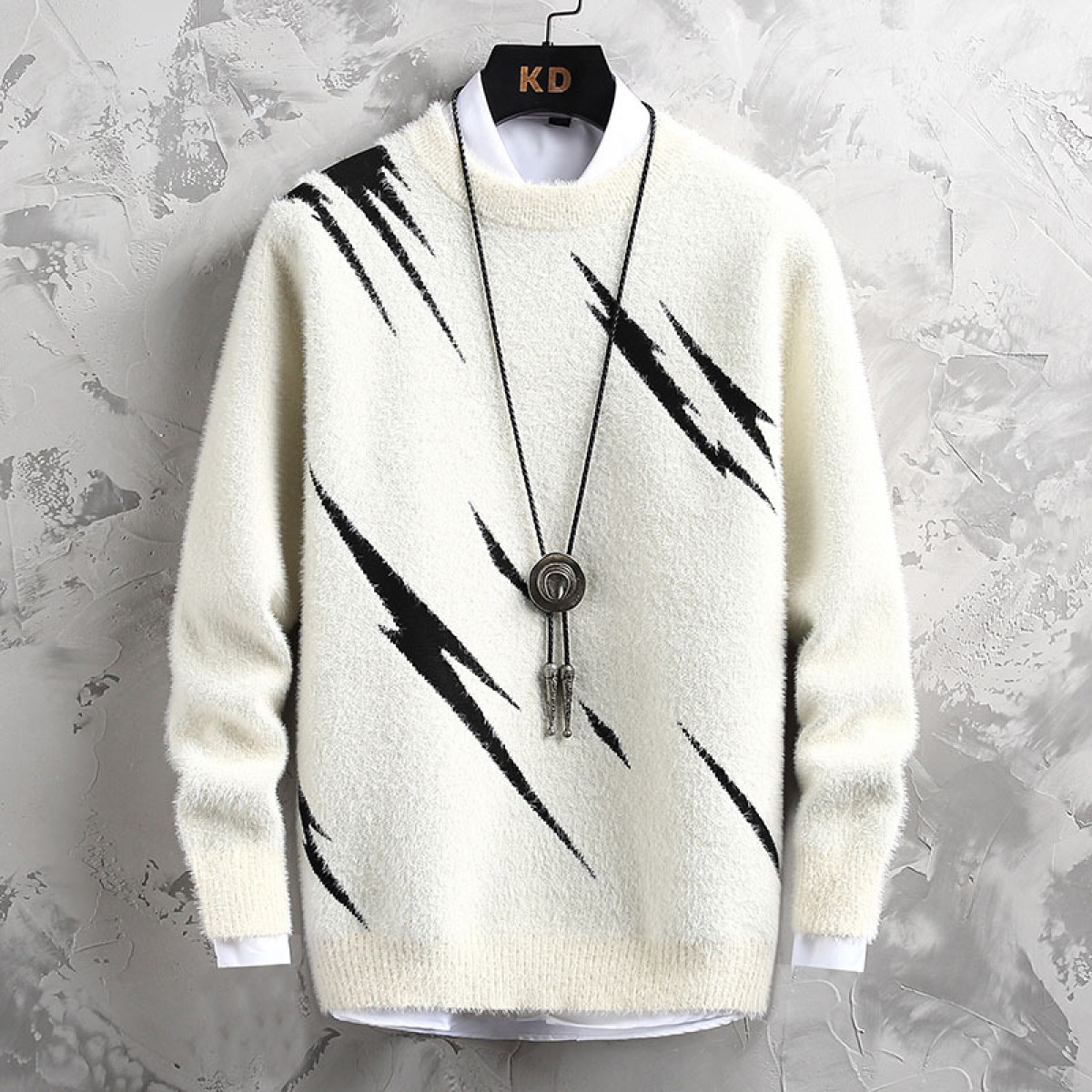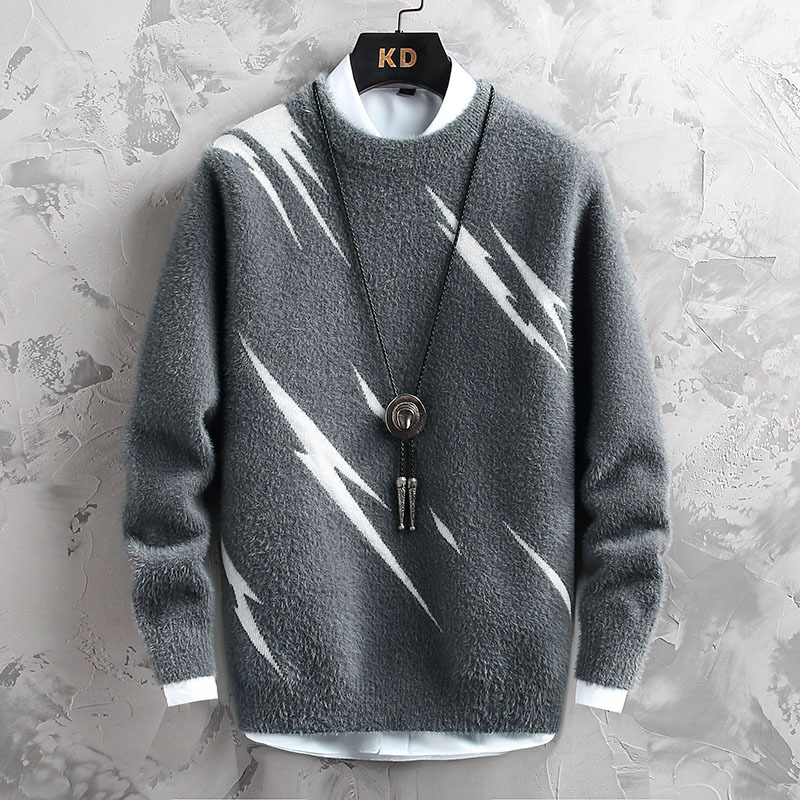 Personalized Jacquard Crew Neck Sweater Men's Autumn And Winter Thickening Tide Brand