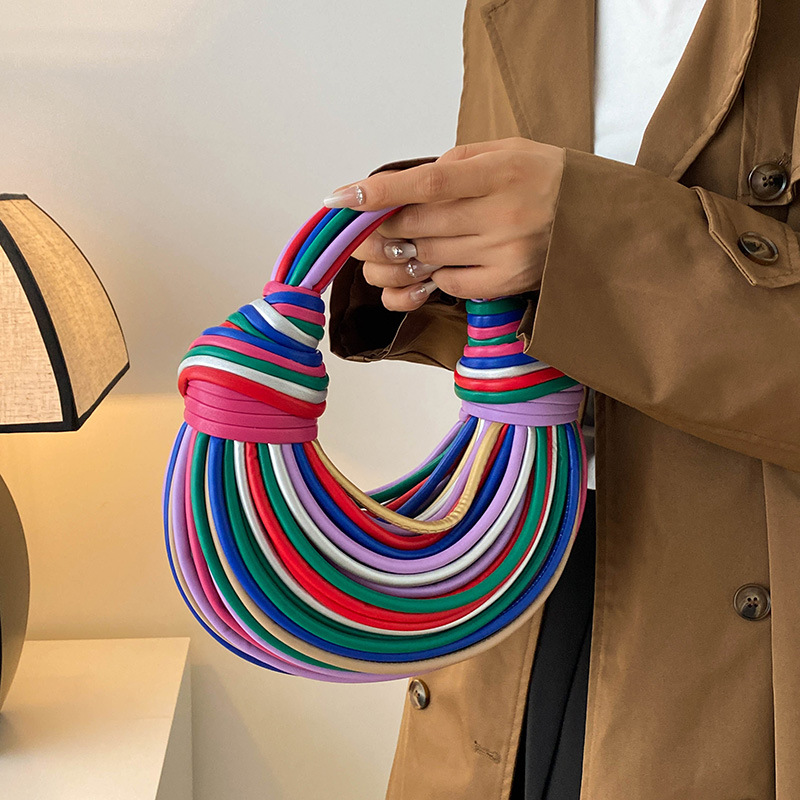 Personalized Noodle Weaving Fashion Candy Color Ladies Hand Bag