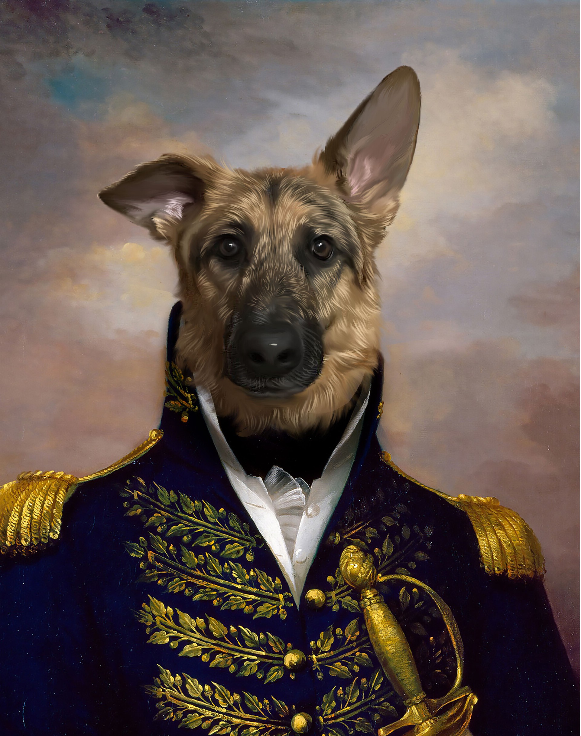 Can you imagine the proud face of your pet, depicted on our authentic veteran Renaissance portrait? Our beautiful canvases are printed in the highest quality and made by hand with sturdy, hard wooden frames.