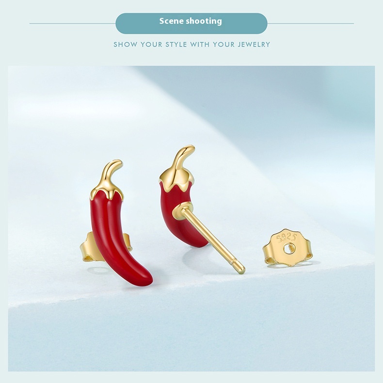 Personalized Red Pepper Stud Earrings Creative