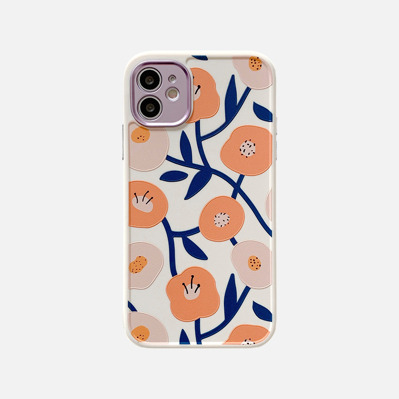 Small flowers iphone12 mobile phone shell straight side 11pro max plating lens ring 8 plus full soft applicable
