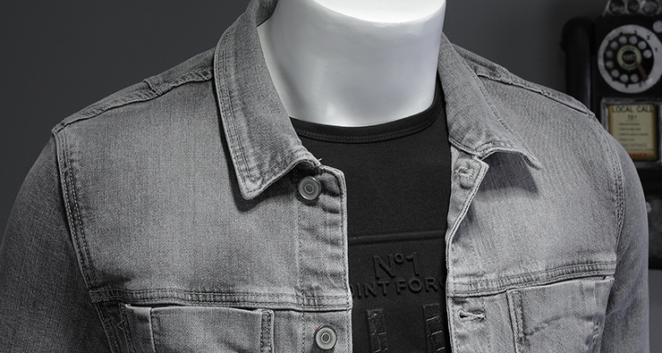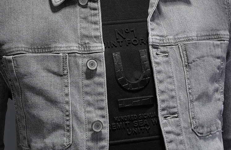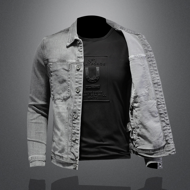Personalized Smoke Gray High Elastic Denim Jacket For Men