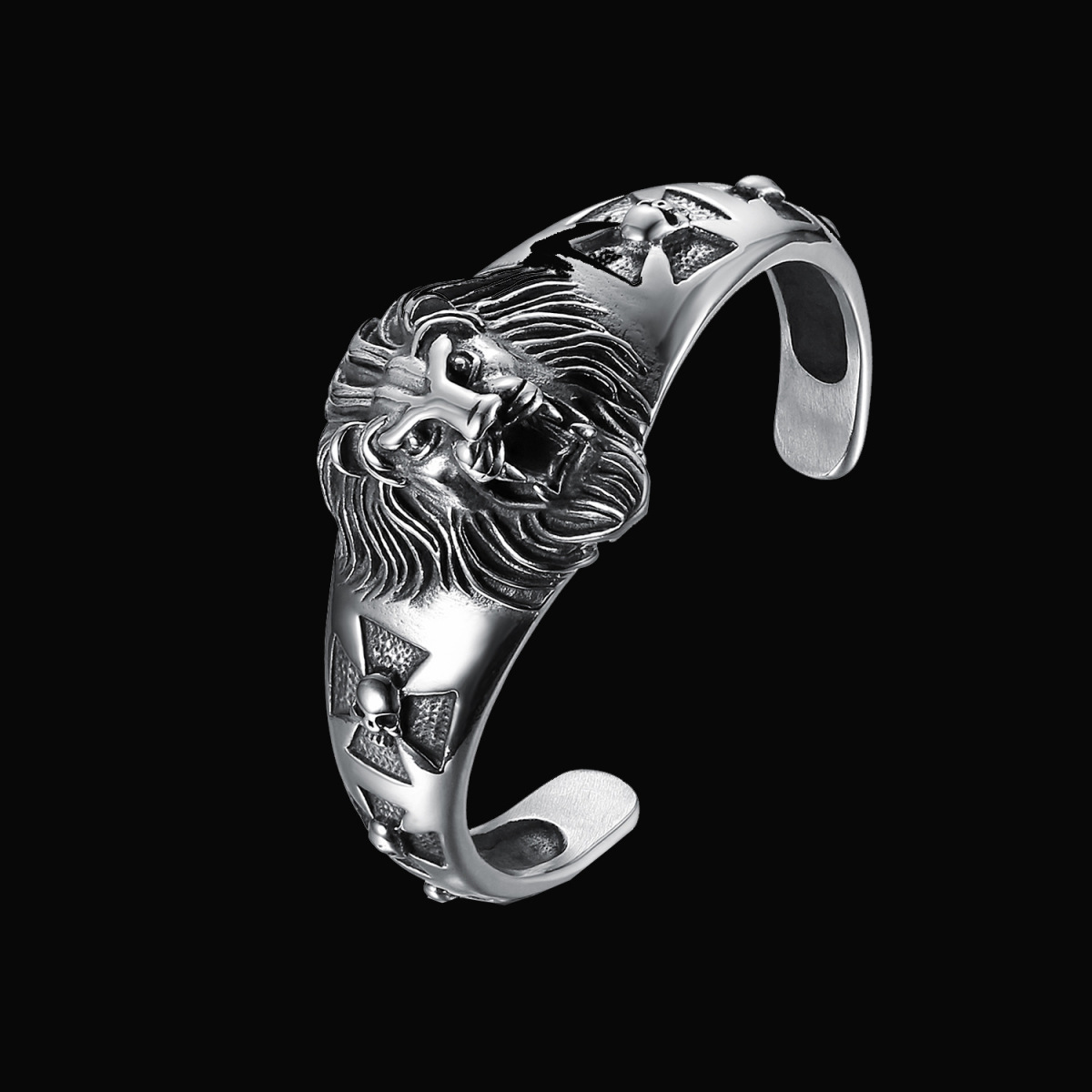 Personalized Stainless Steel Men's Lion Head Punk-Style Biker Bracelet