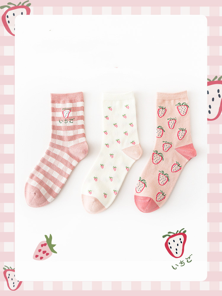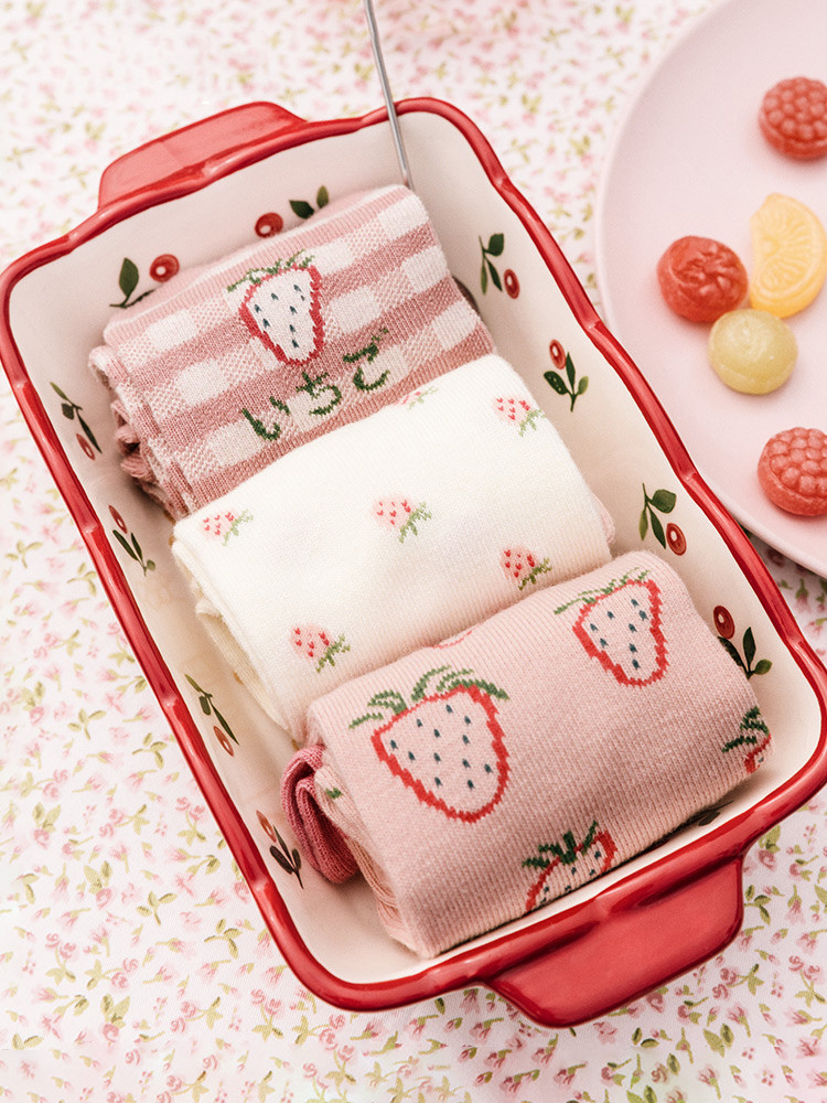 Color classification: autumn strawberry in the tube three pairs of women's socks