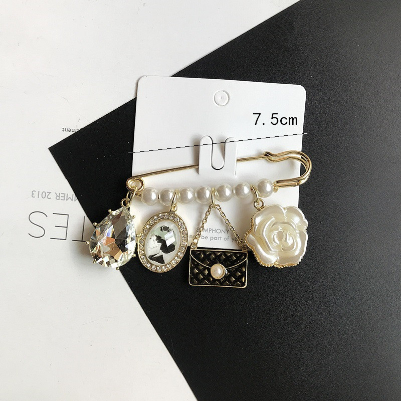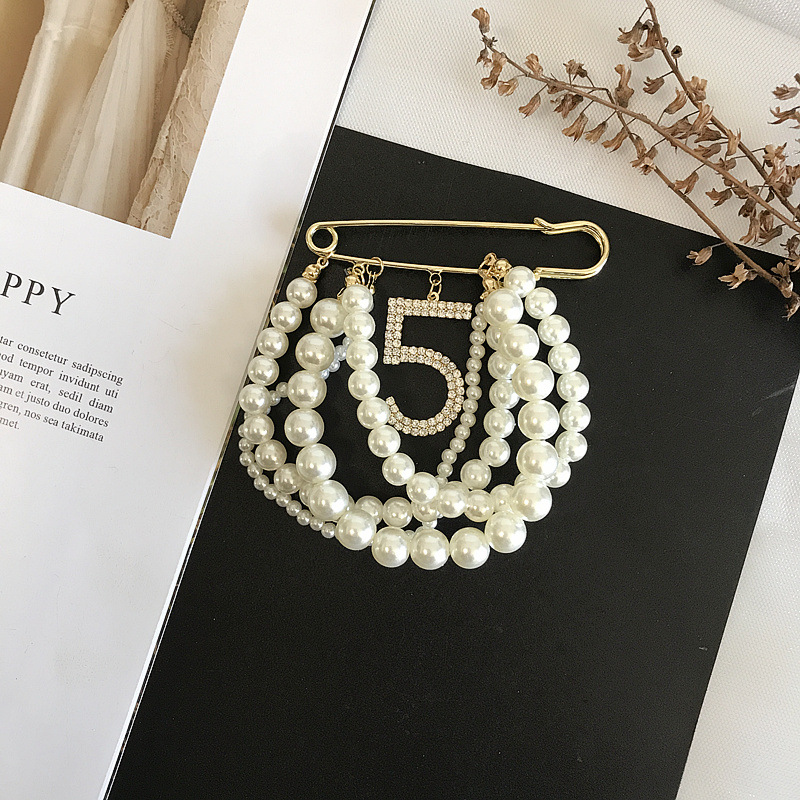 7Style: Brooch 21-Diamond 5 Pearl String Brooch