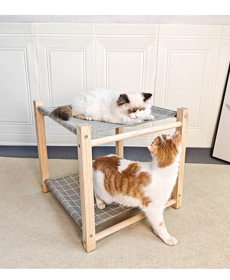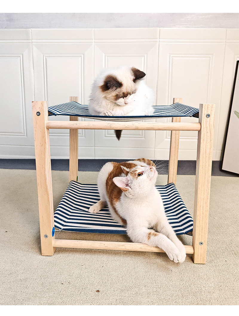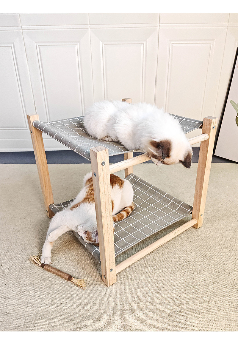 Pet Camp Bed Solid Wood Double Layer Cat Hammock Upper And Lower Bunk Removable And Washable
