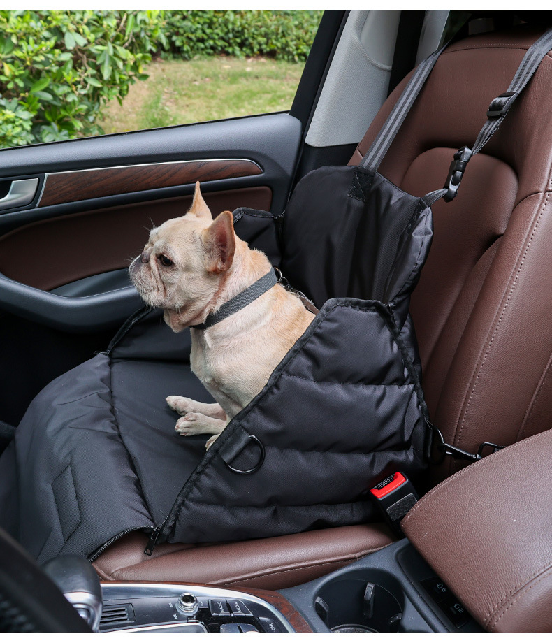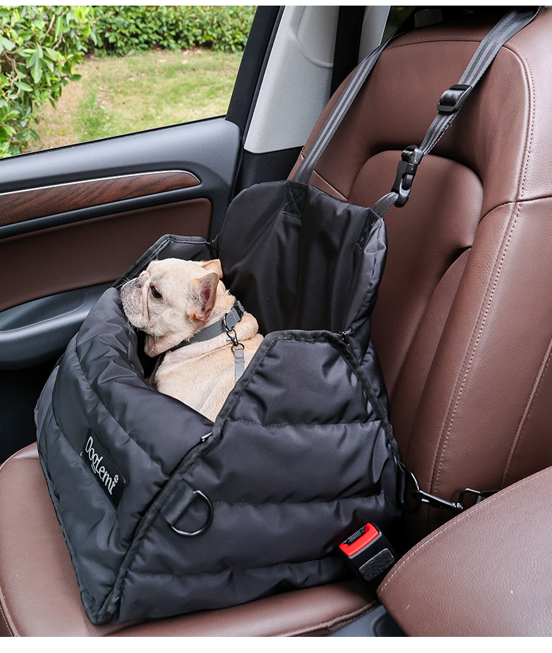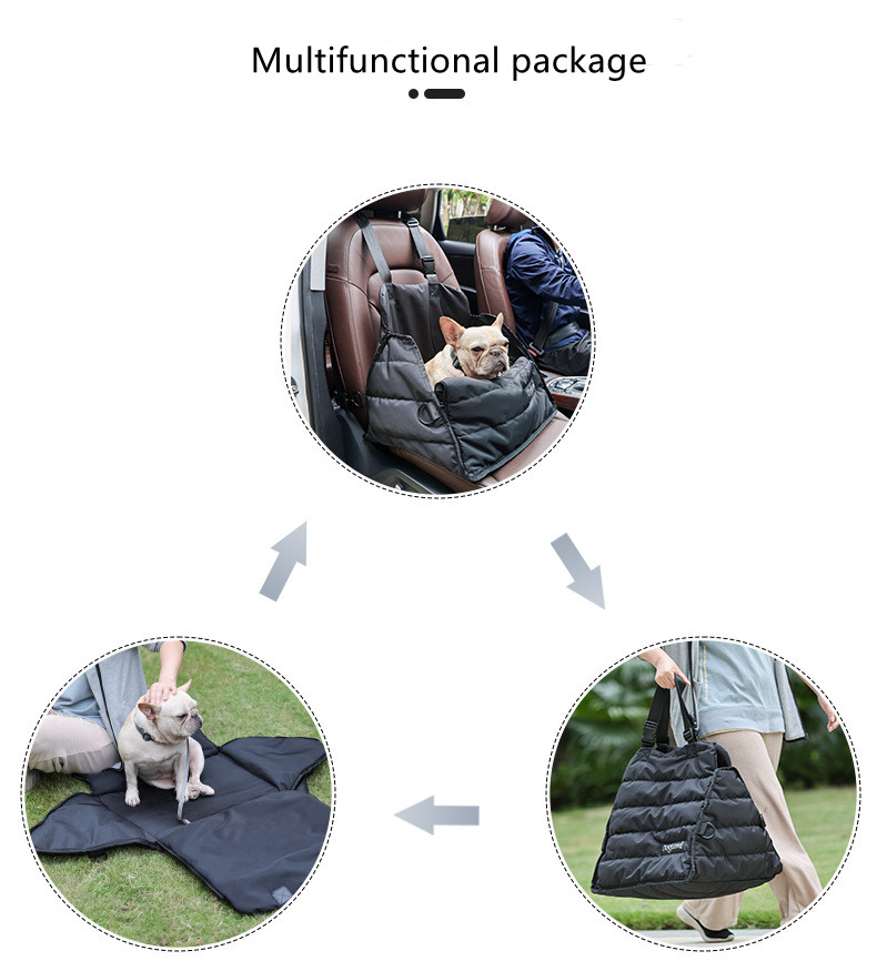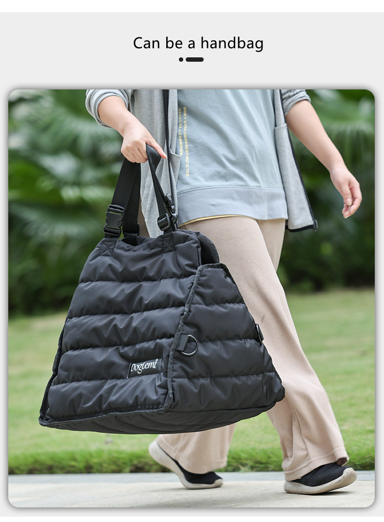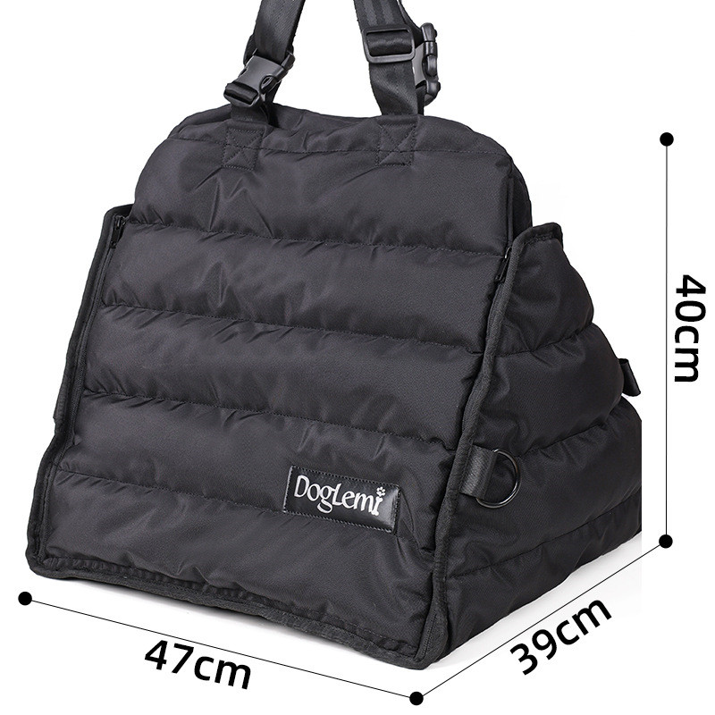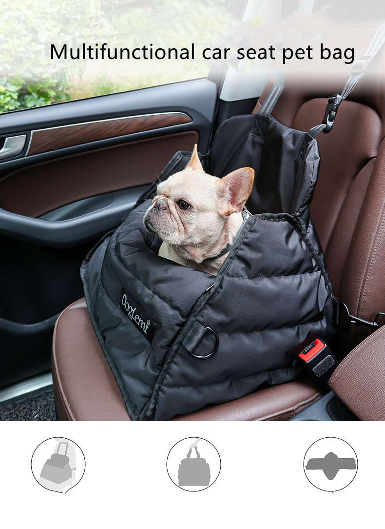 1. This dog travel bag performs multiple duties: it is a safety car seat, travel bed, and dog house on the go!