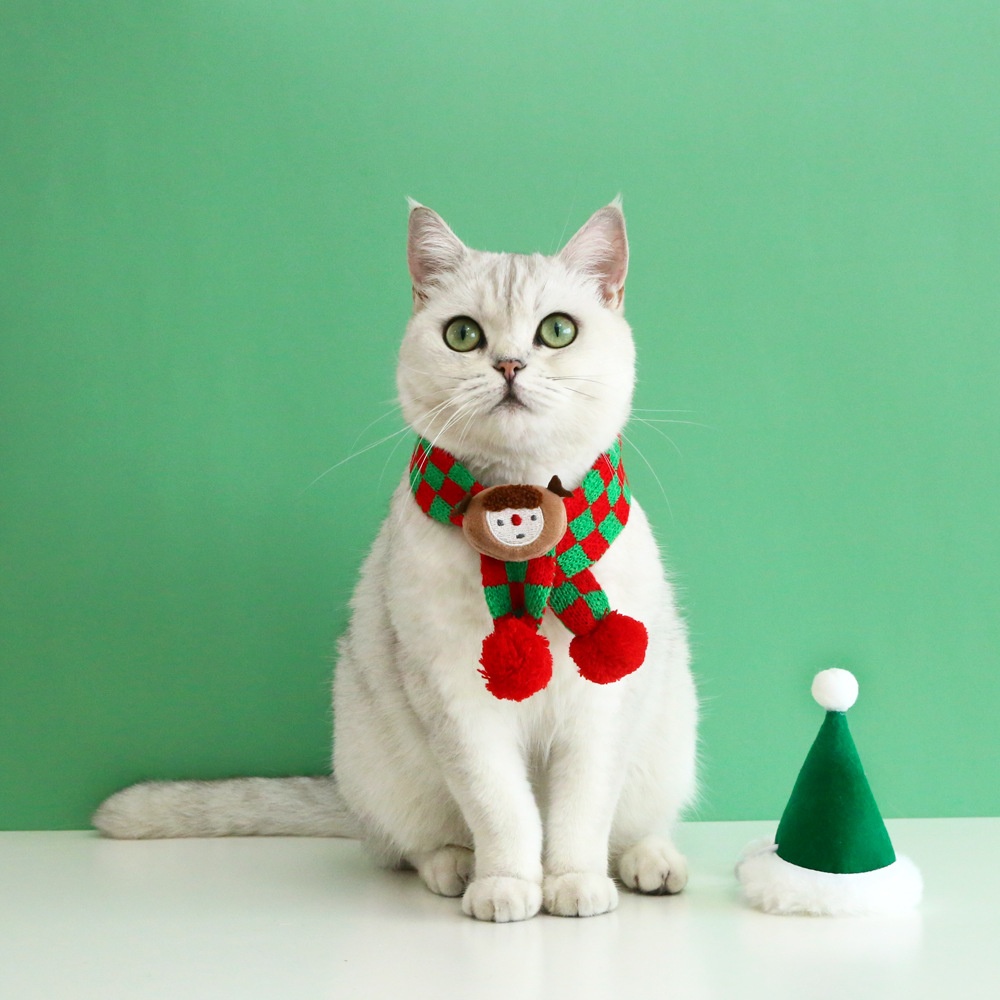 Color: Snowflake scarf for the elderly, Elk plaid scarf, snowflake scarf, plaid scarf, red Christmas hat, green Christmas hat