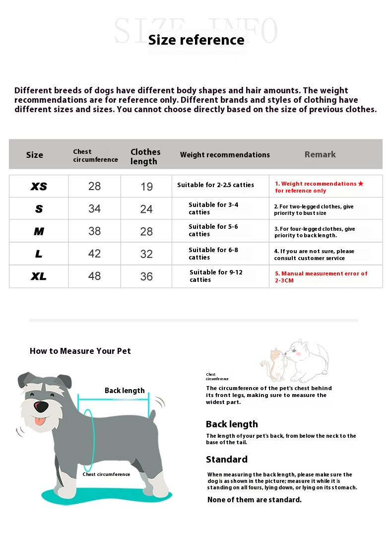 Specifications: XS (suitable for about 2kg),S (suitable for about 1.50 kg-2.00kg,M (suitable for about 2.50 kg-3.00kg,L (suitable for about 3.00kg-4.00kg, XL (applicable to about 4.50 kilograms-6.00 kilograms, the weight is for reference only, not necessarily accurate