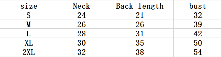 Size: S M L XL XXL