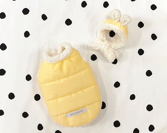 Pet style: CasualColor: Yellow, black and pinkStyle of pet clothes: cotton-padded clothesApplicable object: general