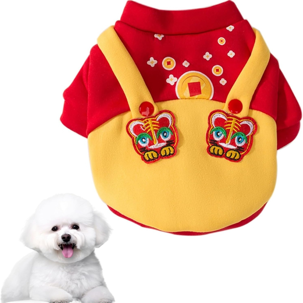 Regarding size: Please first measure your pet's bust and back length before choosing to purchase this product. If your pet is still growing, or your pet has a stout body, it may affect the comfort of the pet's wear