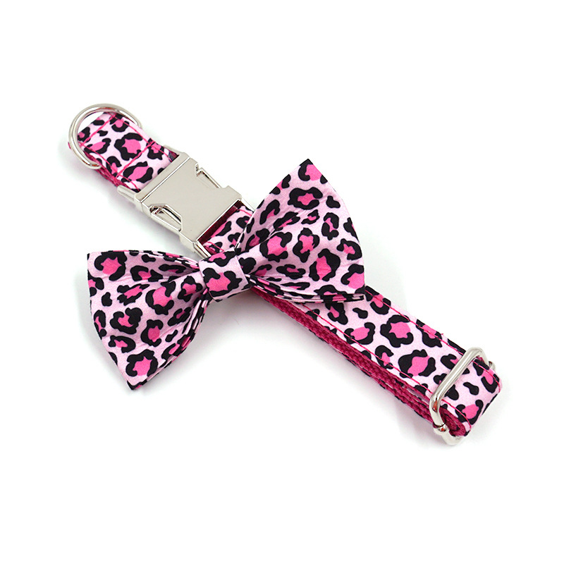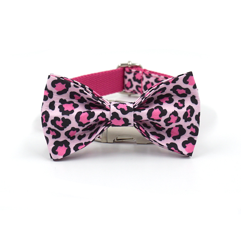 Color: pink leopard pet collar bow