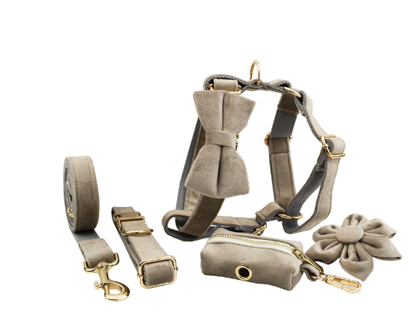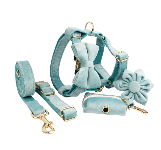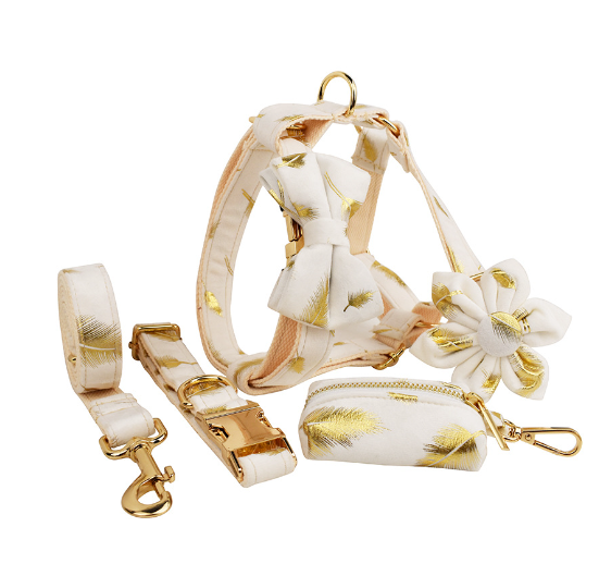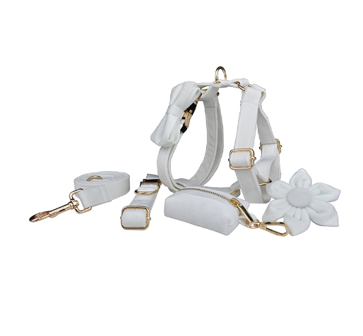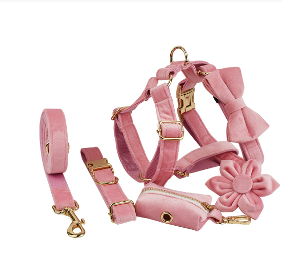 Color: dog leash, dog rope, bow, flowers, dog vest, dog poop bag