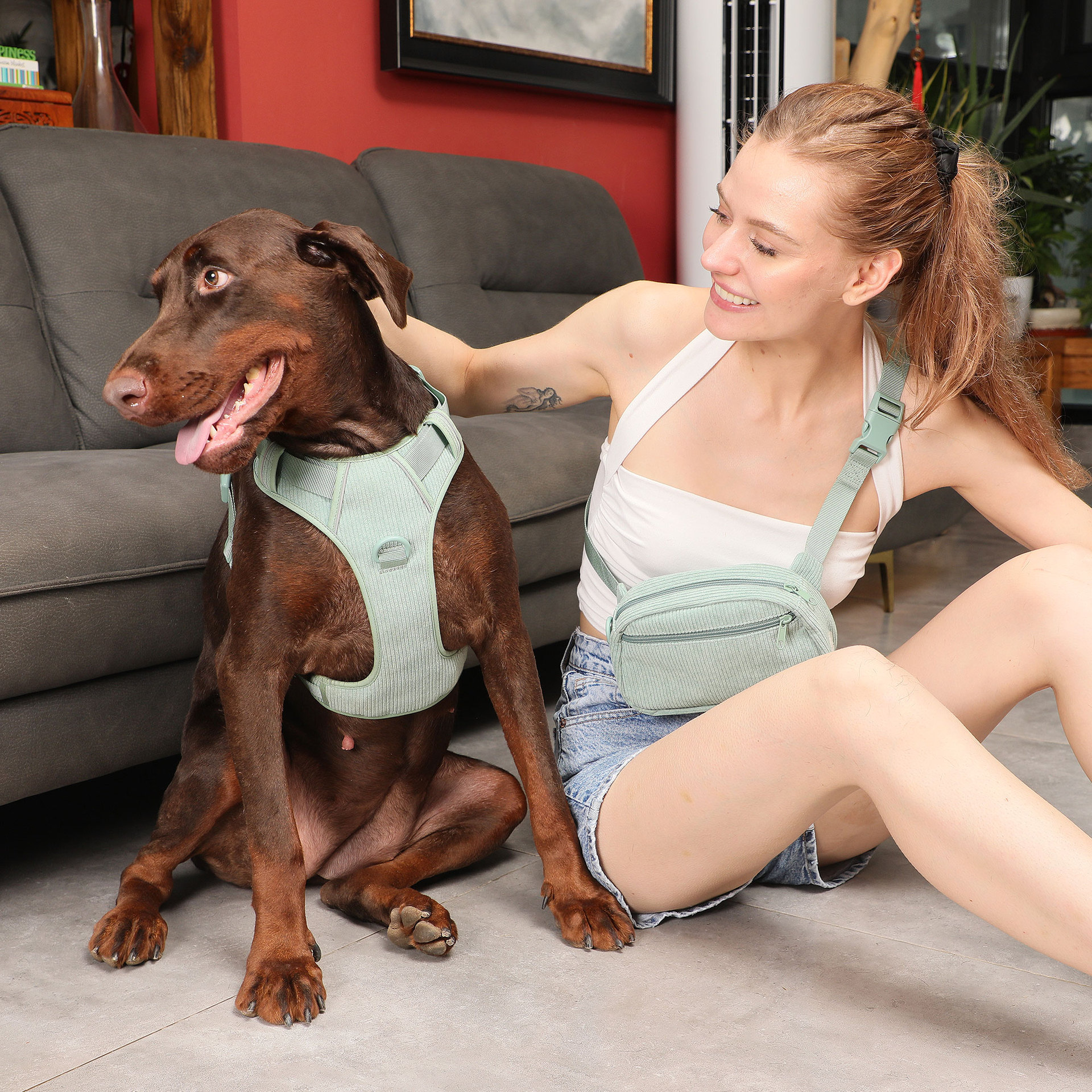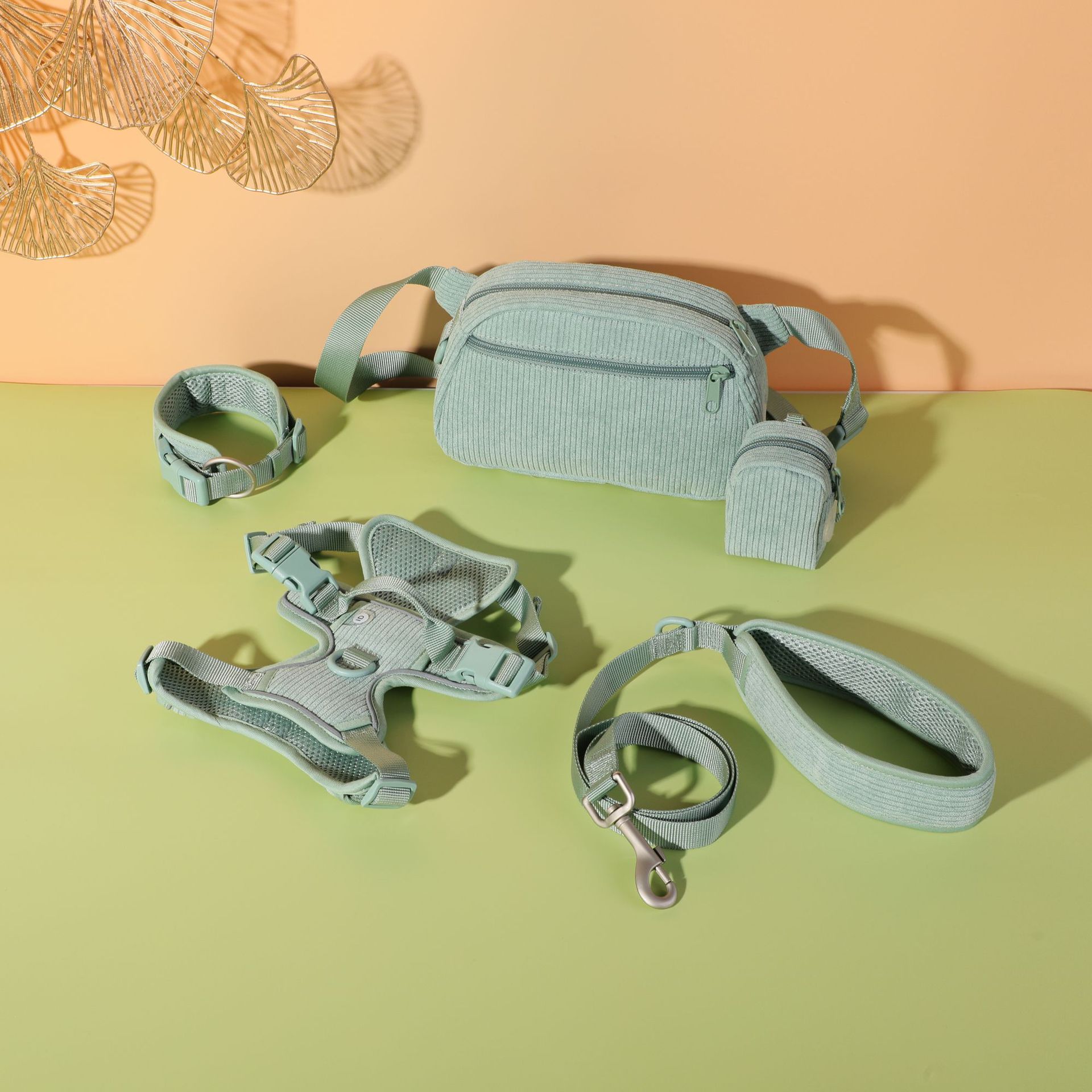 Color: mint green pet collar, mint green pet hand rope, mint green pet chest, mint green mini schoolbag dog bag, mint green dog bag