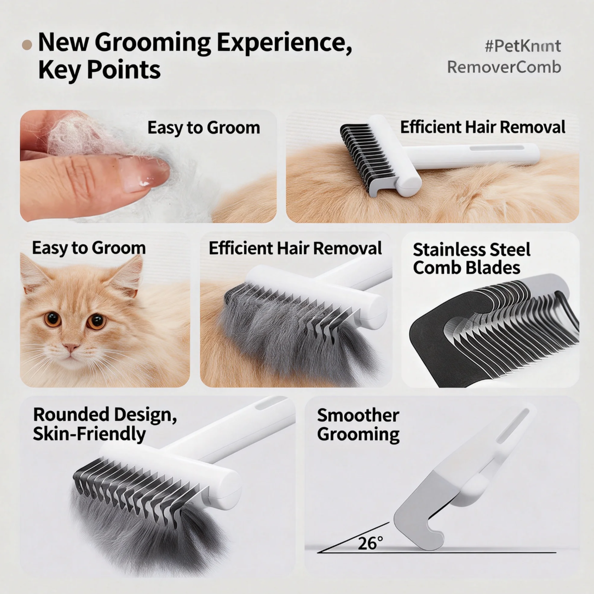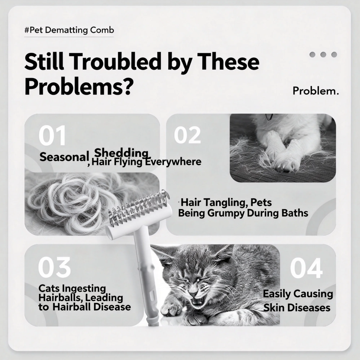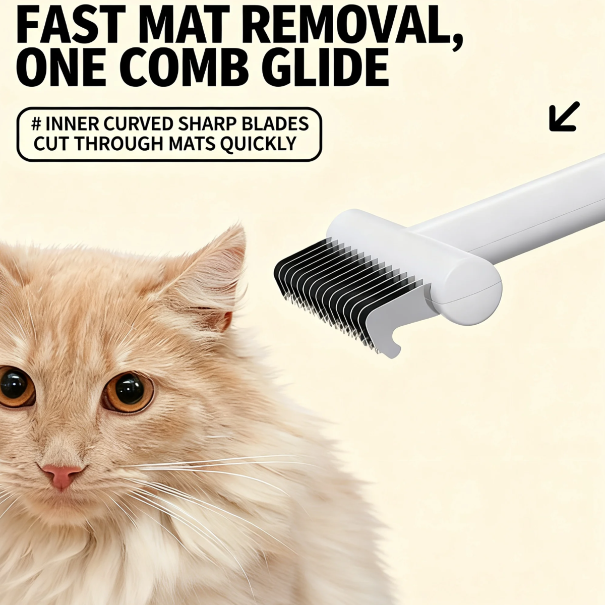 • 【Efficient Detangling & Deshedding】Features curved, sharp stainless steel blades that quickly cut through stubborn mats and dead knots while effectively removing loose undercoat and floating hair, leaving your pet's coat smooth and healthy.