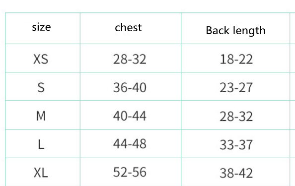 Size: XS-approximately 2-3 kg, S-approximately 4-6 kg, M-approximately 7-8 kg, L-approximately 10-12 kg, XL-approximately 14-18 kg