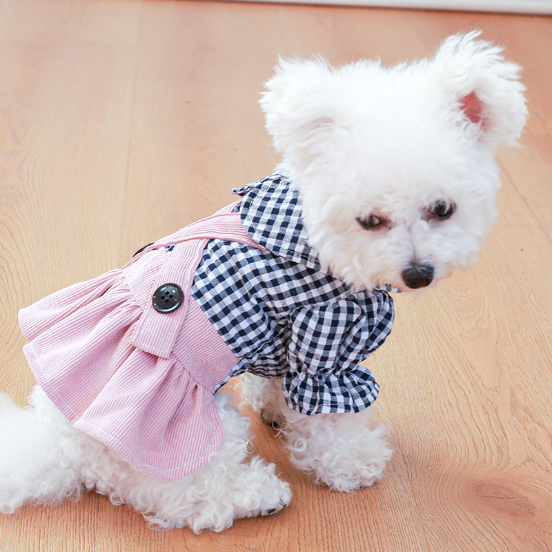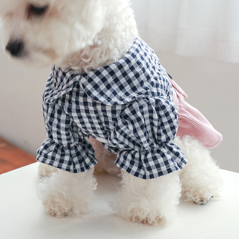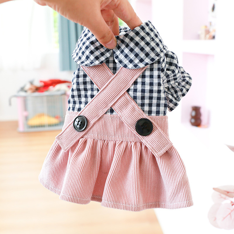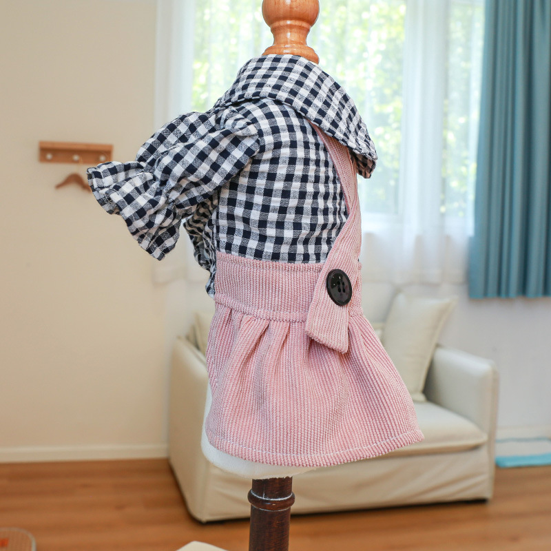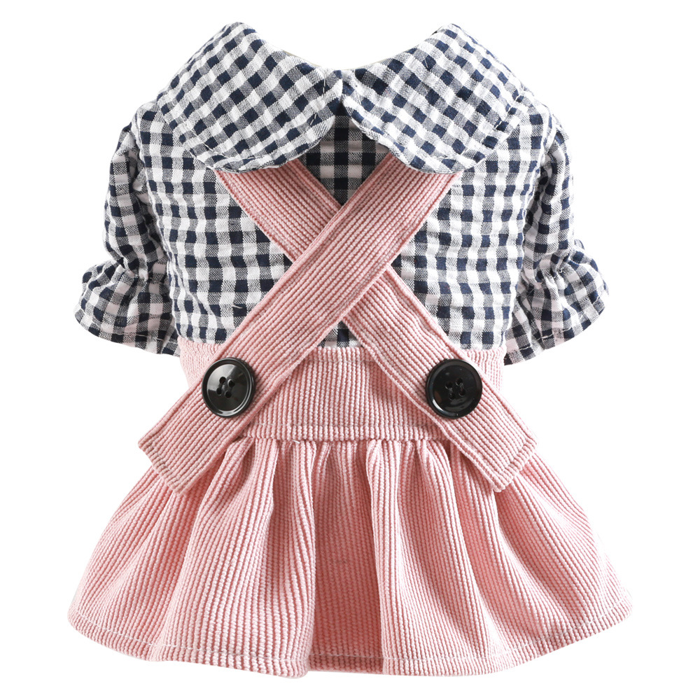 Color: Black Button Plaid overall dress, blue and white bow suspenders dress