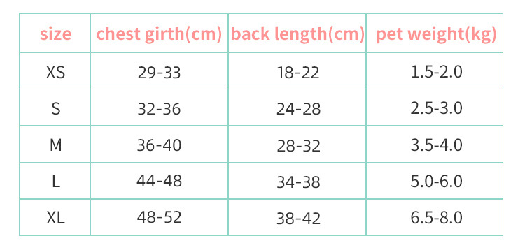 Size: XS-about 1.00 kilograms-1.50 kilograms, S-about 2.00 kilograms-3.00 kilograms, M-about 3.50 kilograms-4.00 kilograms, L-about 5.00 kilograms-6.00 kilograms, XL-about 7.00kg-9.00kg
