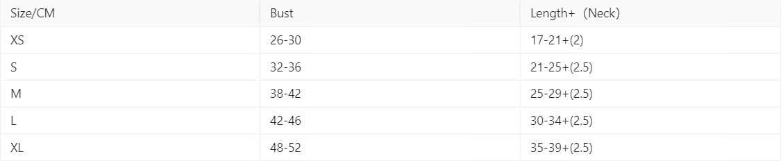 Size: XS-about 2-3 Jin, S-about 4-6 Jin, M-about 7-8 Jin, L-about 10-12 Jin, XL-about 14-18 Jin