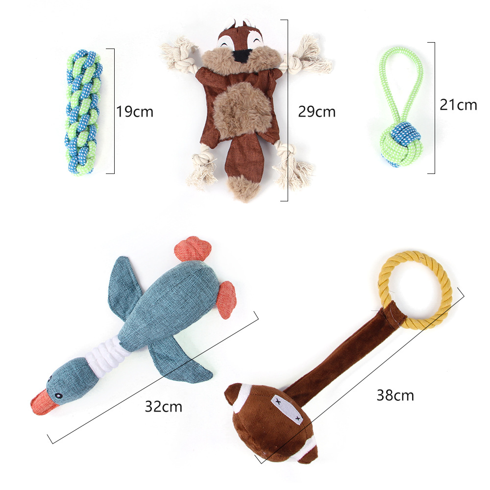Pet Dog Cotton Rope Bite Resistant Plush Teeth Cleaning Toy Set