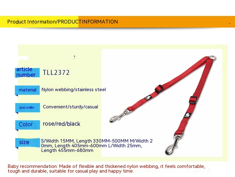 Material: thick nylon strap stainless steel pull ring stainless steel shrimp buckle