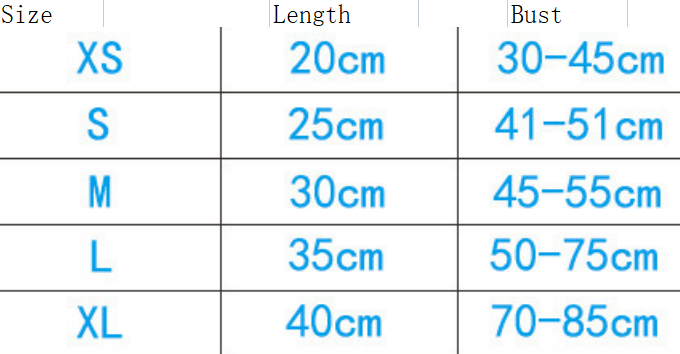 Size: XS (about 3-6 kg), S (about 4-10 kg), M (about 6-13 kg), L (about 11-22 kg), XL (about 18-30 kg)