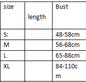 S/ bust 48-58cm, M/ bust 56-68cm, L/ bust 65-88cm, XL/ bust 84-110cm