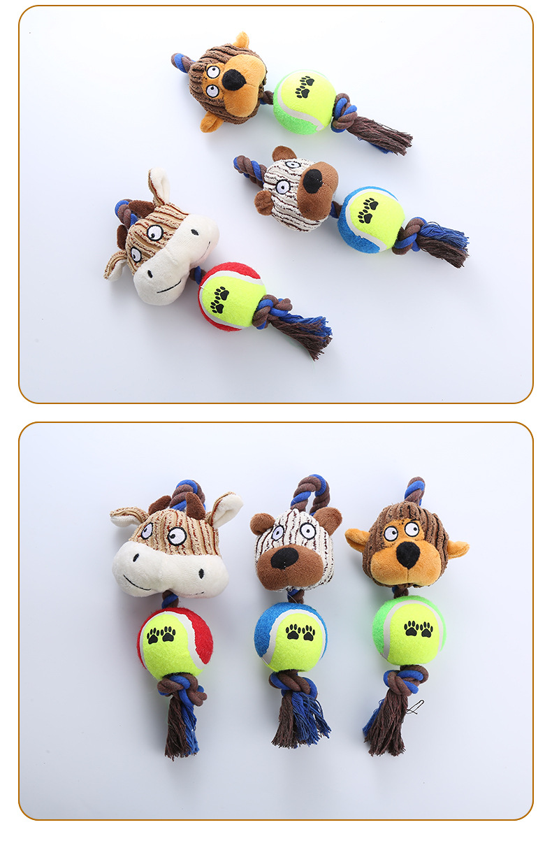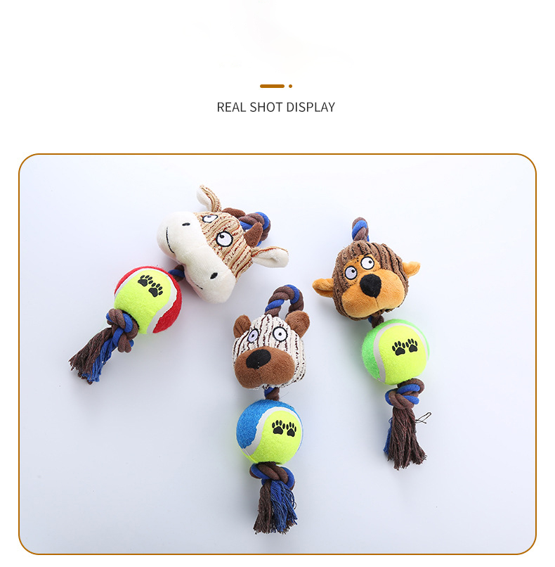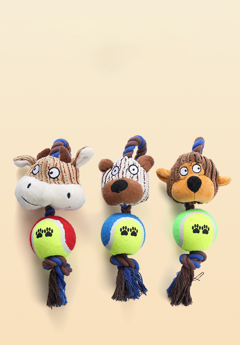 Pet Dog Toy Corduroy Tennis Ball Cotton Rope Dog Bite Resistant Teeth Sound Toy Interactive Play