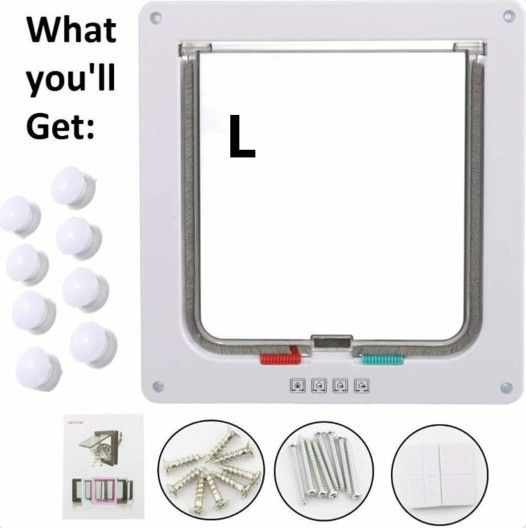 Pet Door Locking Small Medium Large Dog Cat Flap Magnetic White Frame 4 Way--21x20x6