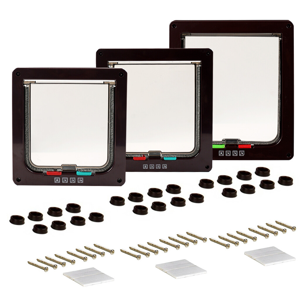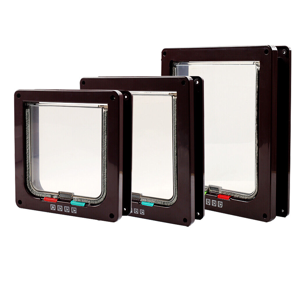 Pet Door Locking Small Medium Large Dog Cat Flap Magnetic White Frame 4 Way