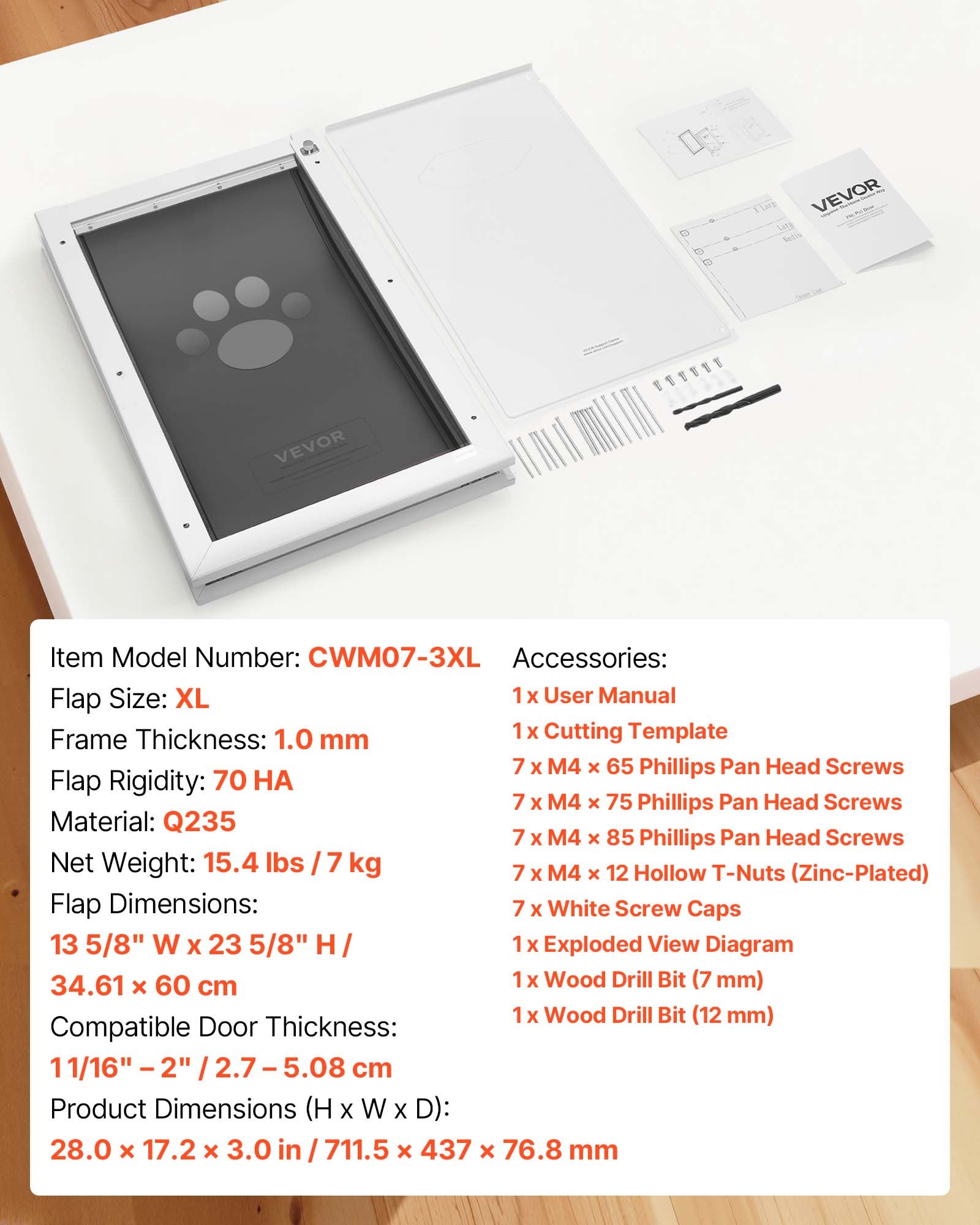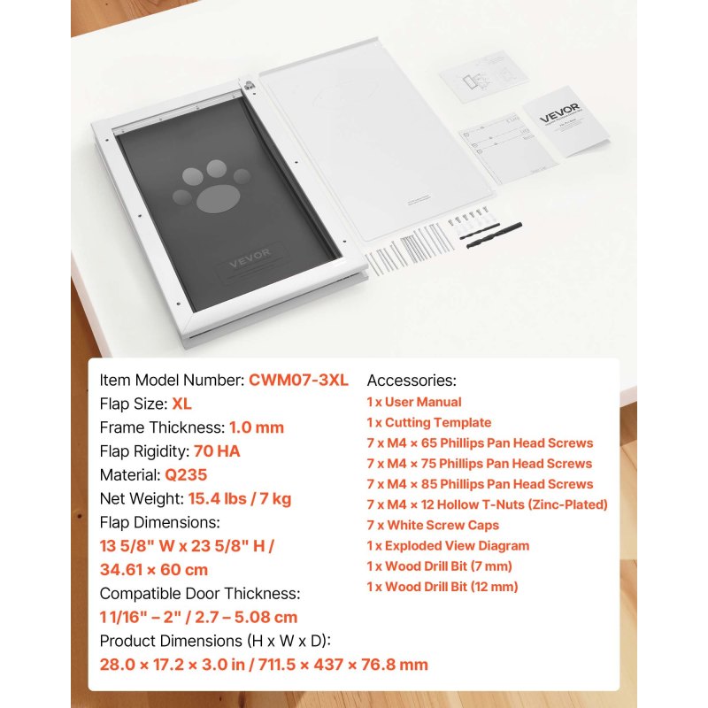 Pet Door, X-Large, With Three Magnetic Flaps And Metal Frame, Strong And Weatherproof Dog Door For Interior And Exterior Doors, Easy To Install, Easy In-and-Out Access For Doggies, White