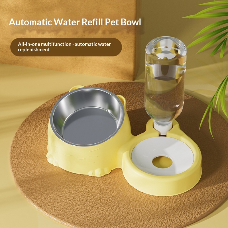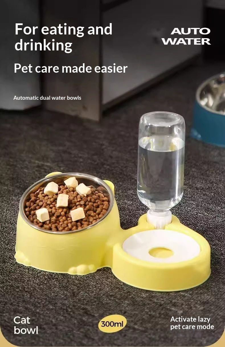 Specifications: Blue cat-paw bowl + stainless steel bowl, green cat-paw bowl + stainless steel bowl, yellow cat-paw bowl + stainless steel bowl, pink cat-paw bowl + stainless steel bowl