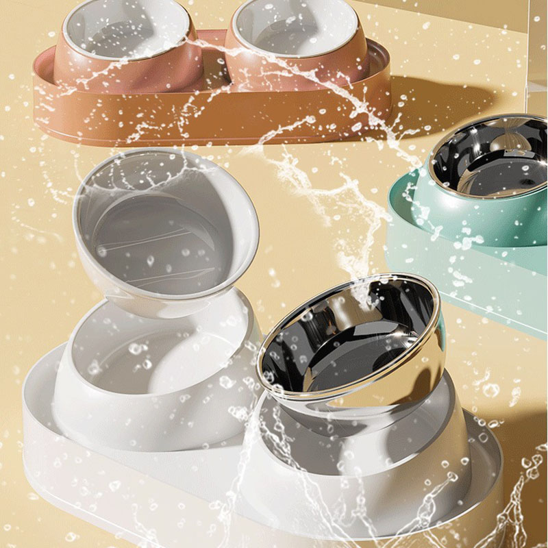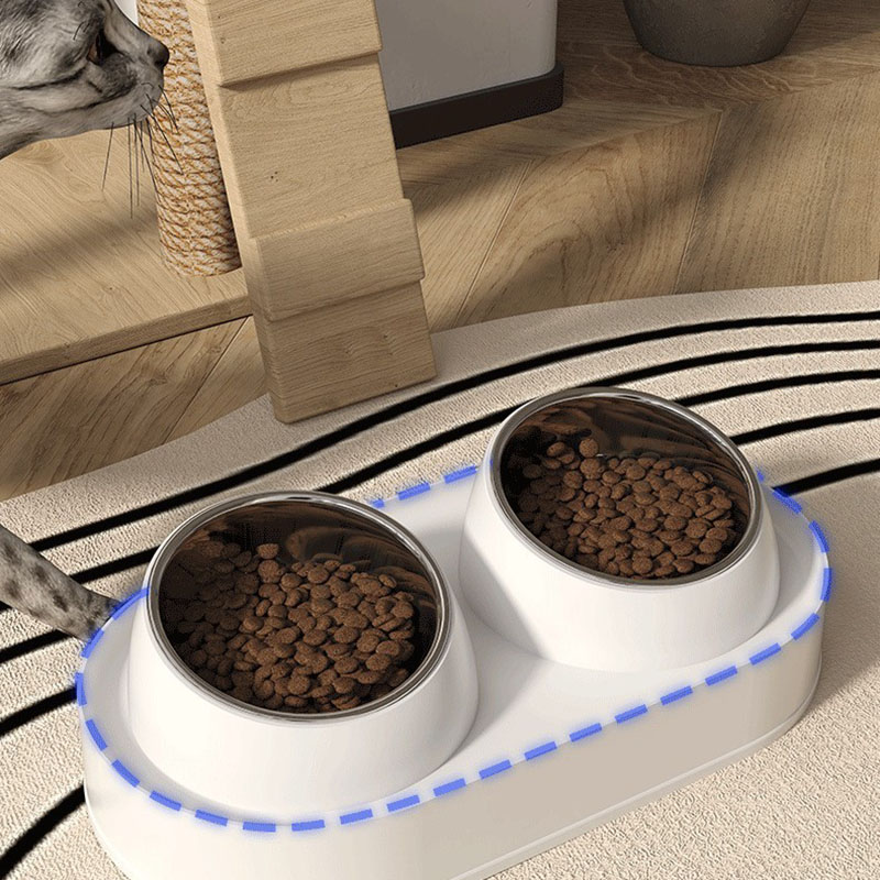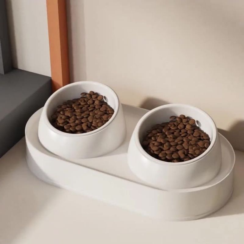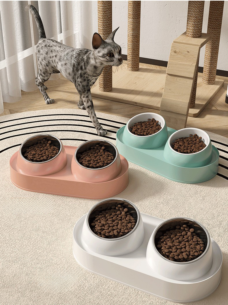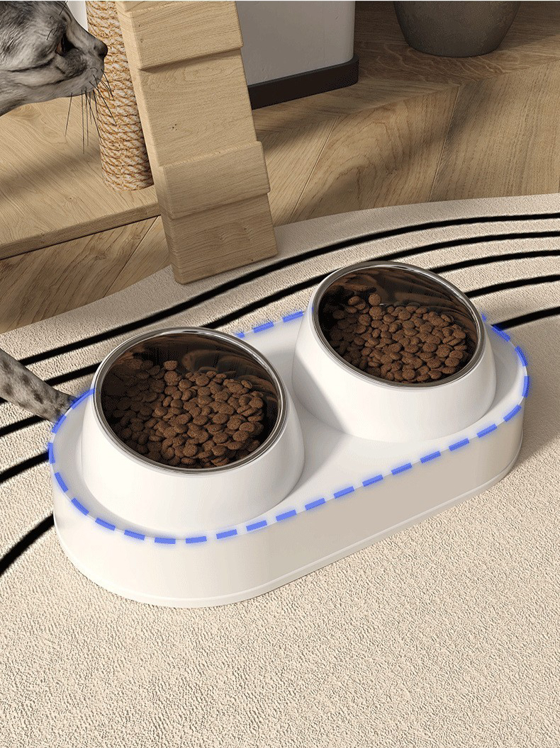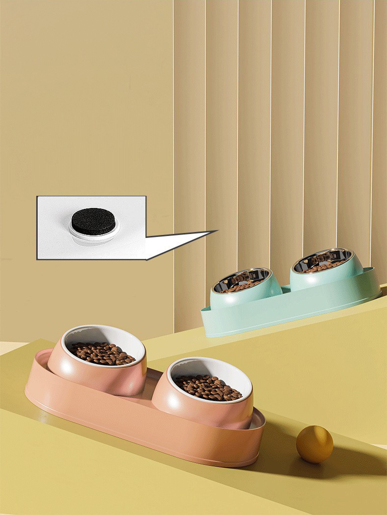 Pet Double Bowl Tilt Protect Neck Cat Bowl Non-slip Dog Food Dish Elevated Cat Dog Food Water Feeder Not Black Chin Pet Supplies