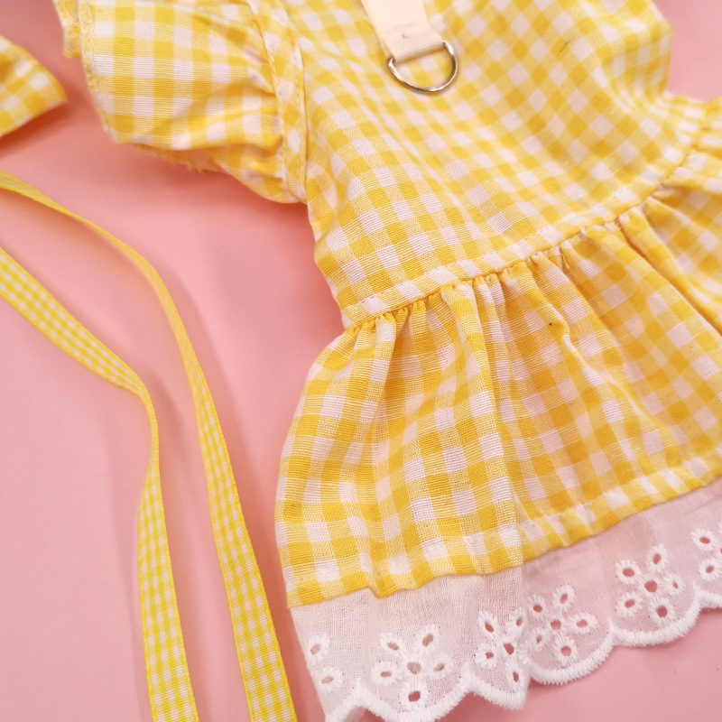 Color: Pet skirt-yellow plaid fly shoulder sleeve, pet skirt-pink plaid fly shoulder sleeve, pet skirt-blue plaid fly shoulder sleeve, pet skirt-pink plaid fly shoulder sleeve