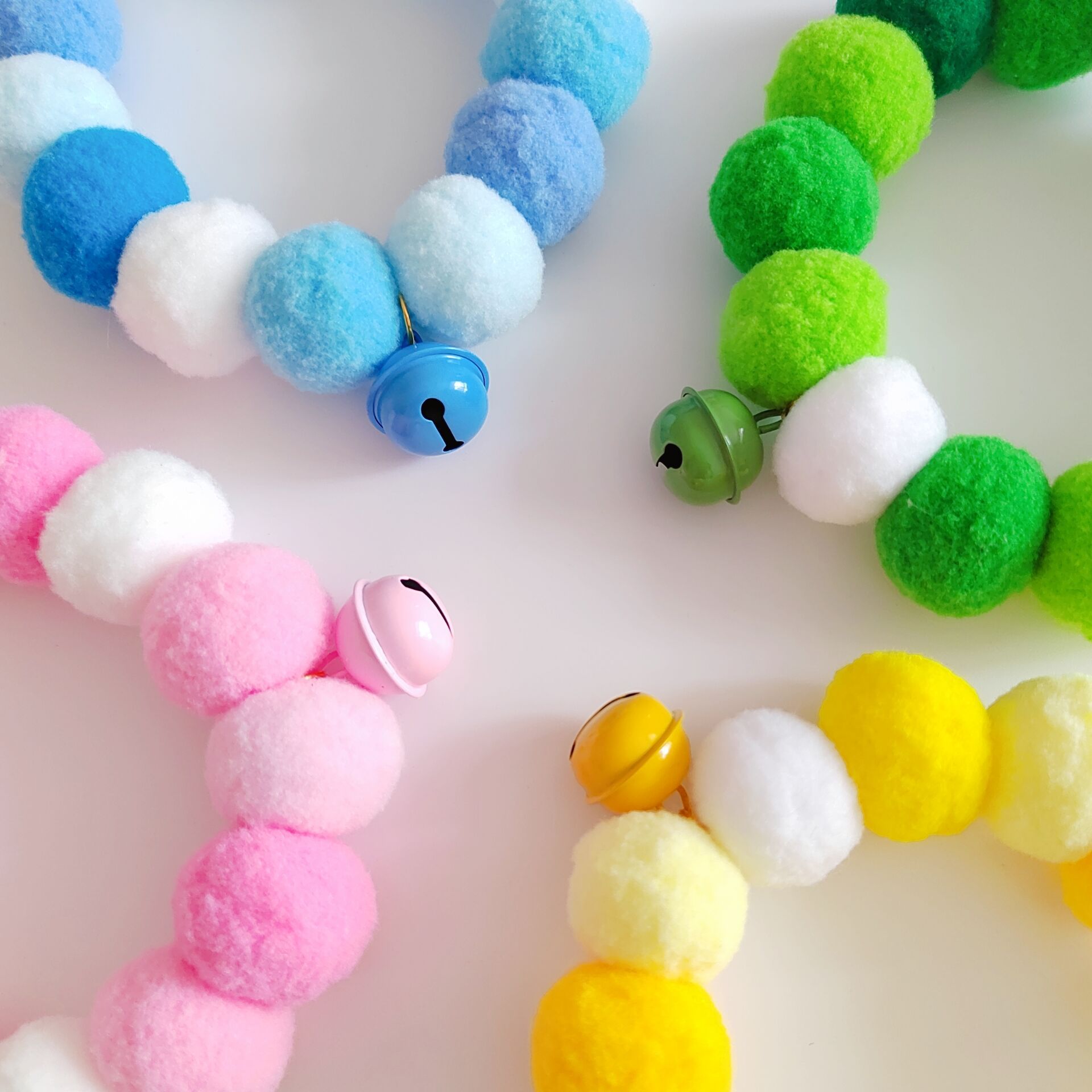 Color: pink fur ball Bell, blue fur ball Bell, green fur ball Bell, yellow fur ball Bell