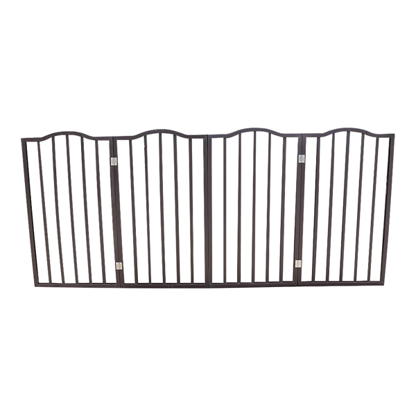 Easy to move & store: lightweight and easy to move.Turning it on and off is easy. CONVENIENTLY FOLDS:This pet gate folds together to a more compact size for convenient storage or transport from room to room. STYLISH AND FUNCTIONAL:This pet gate is excellent way limit your pet's access to parts of your home, while maintaining a modern appearance. NO INSTALLATION REQUIRED: This barrier is a perfect way limit access to parts of your home while maintaining a stylish look. Simply just unfold it and block off the area you need! Materials:populus wood, Color: Dark Brown Opened size: 1 inch (L) x 73 inches (W) x 32 inches (H) Folded size: 4 inches (L) x 19 inches (W) x 32 inches (H) 1 set of Pet Gate in 1 carton